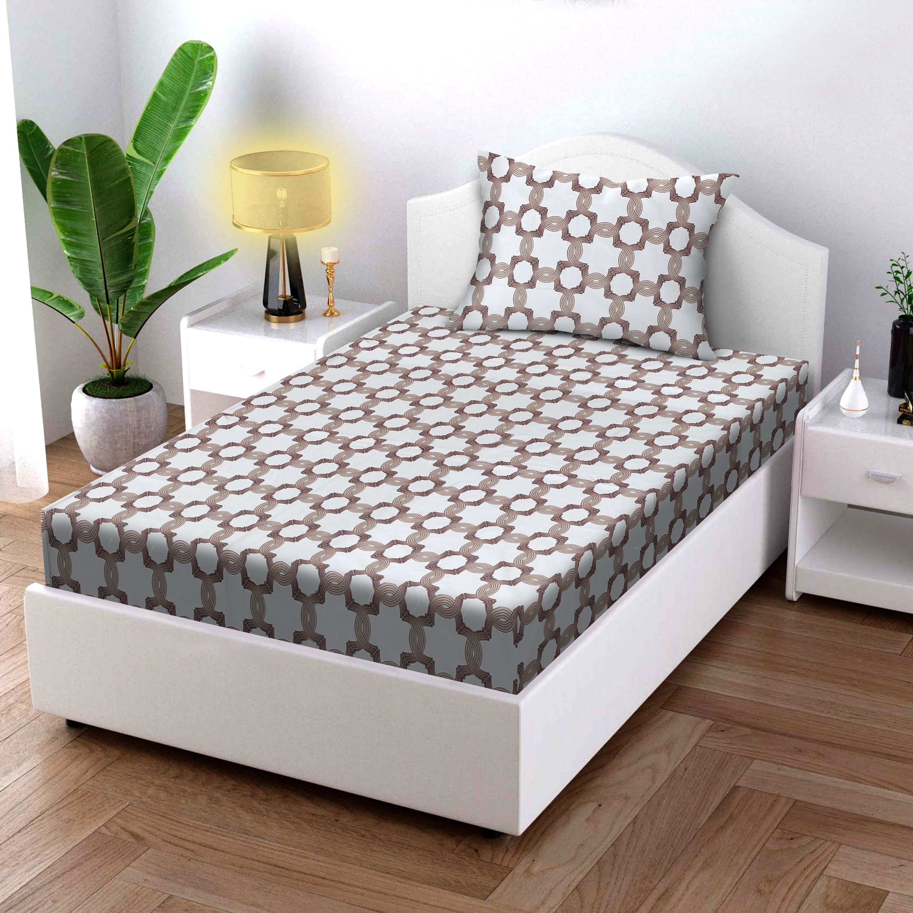 Crafted from high-quality fabric, this pattern is ideal for bedsheets that blend durability with style. Whether you're looking to buy bed sheets online, explore pure cotton bedsheets, or shop for bedding sets Australia online, this design offers the perfect combination of beauty and practicality. Its earthy tones and detailed geometric styling make it a versatile choice for bedrooms seeking a warm, inviting aesthetic. Order now to elevate your bedding collection with this timeless and elegant print!